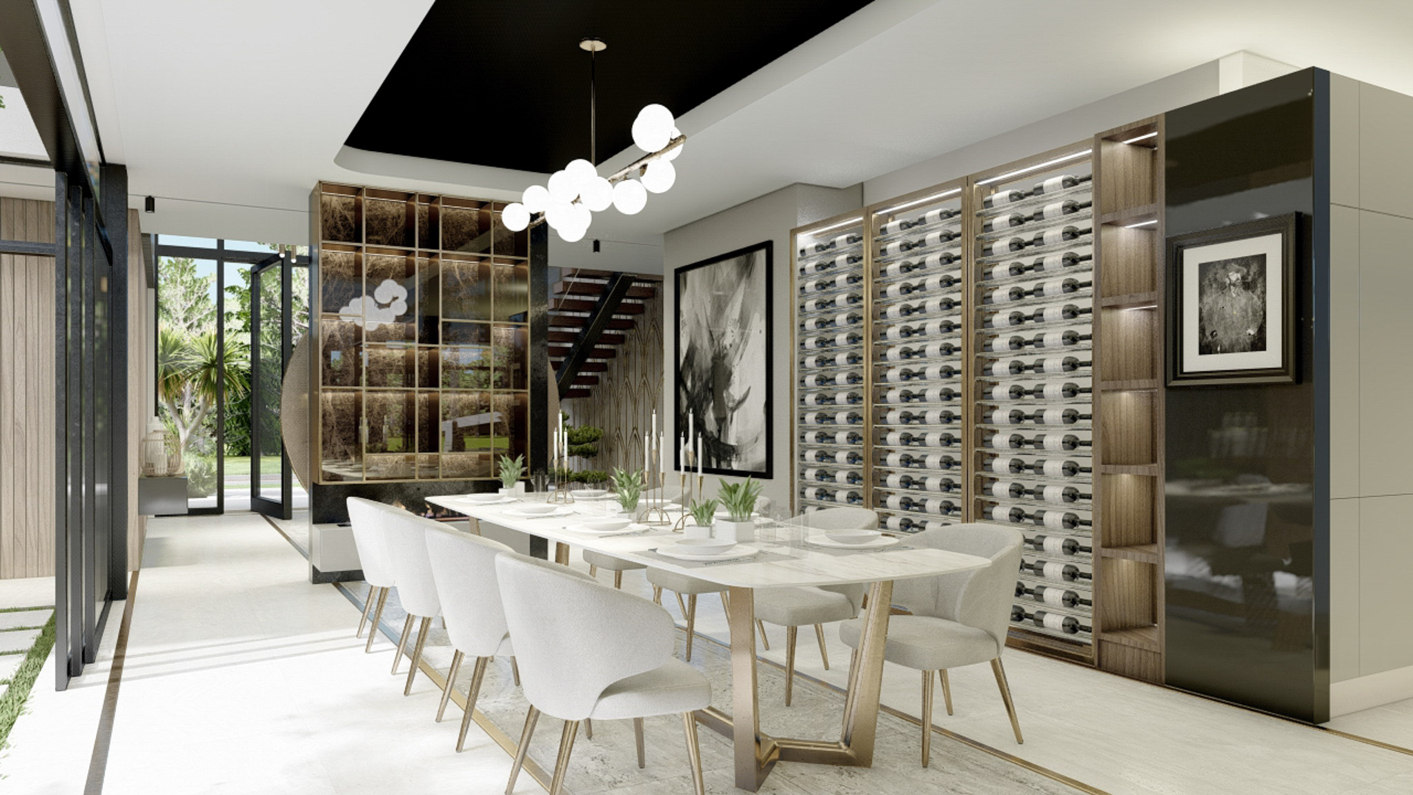 This upmarket residential home in Hartbeespoort boasts a magnificent entertainment area that looks directly onto one of the canals that flow through the estate. The easy progression from the interior onto the deck allows for full enjoyment of the views, which can be appreciated from almost every room inside the house.