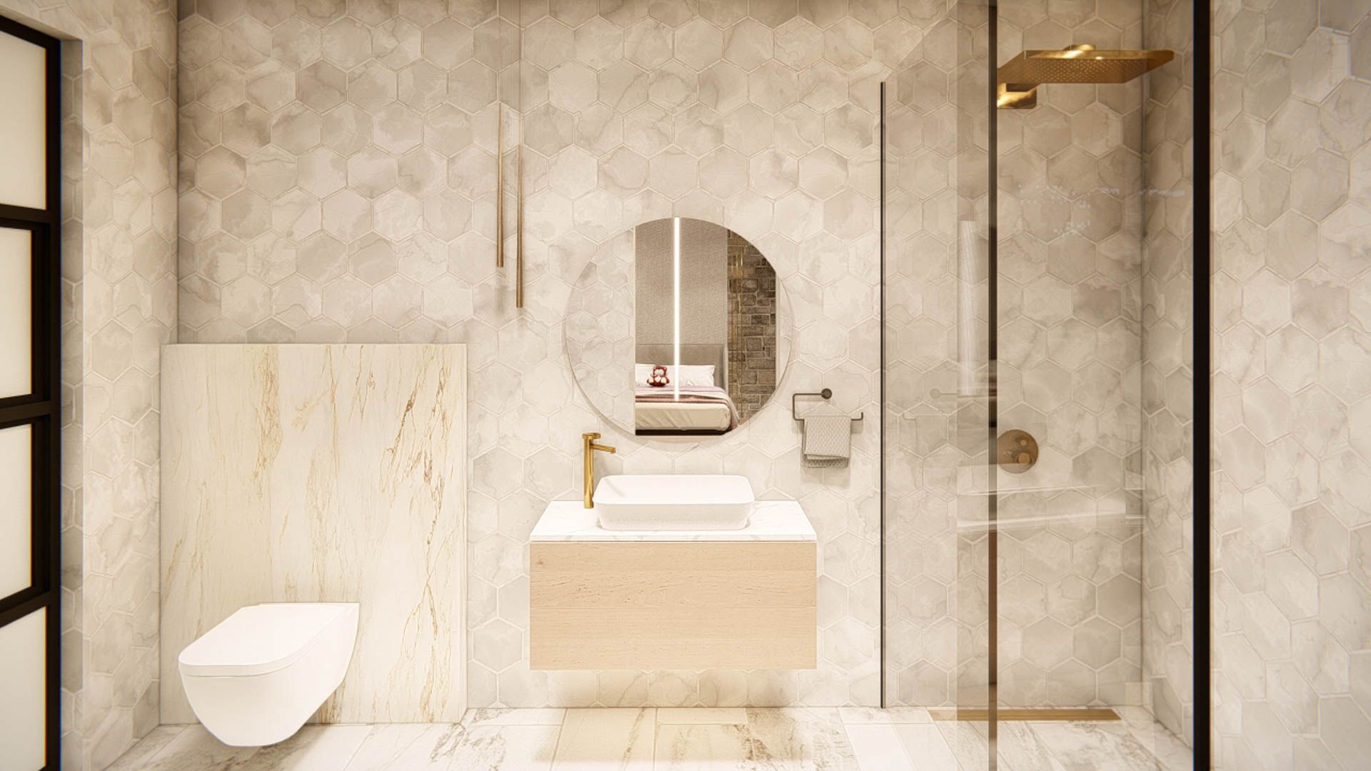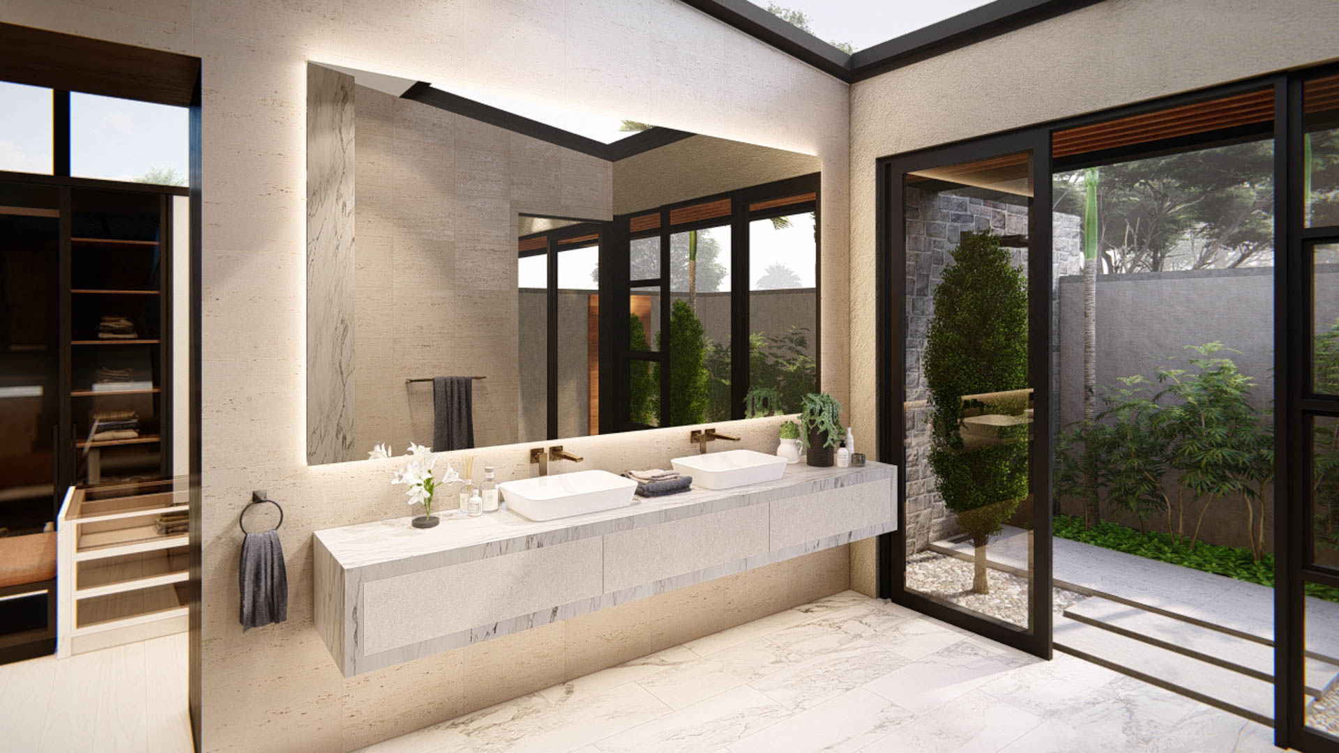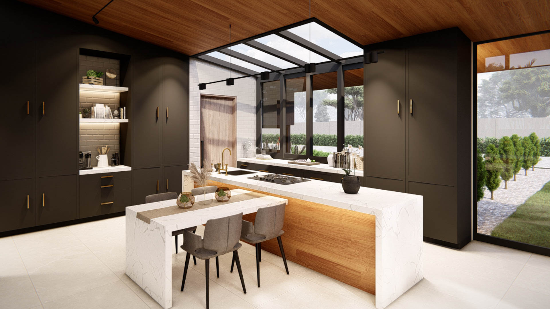 The home includes four bedrooms, each with its own en-suite bathroom, including a private guest suite. Additional spaces such as a dedicated home office, pool house, and fully equipped gym support modern lifestyle needs while maintaining a strong connection to the surrounding landscape.